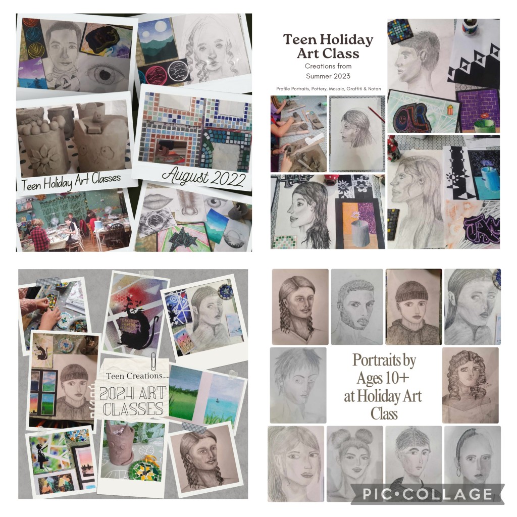 Art Classes, Ages 11-16: A Summer Art Course for older children interested in extending their creative studies. Students will develop their skills in sketching, shading, painting, proportion, perspective, clay, mosaic, print and more. A great way to spend the holidays having fun, making new friends & learning new creative skills.