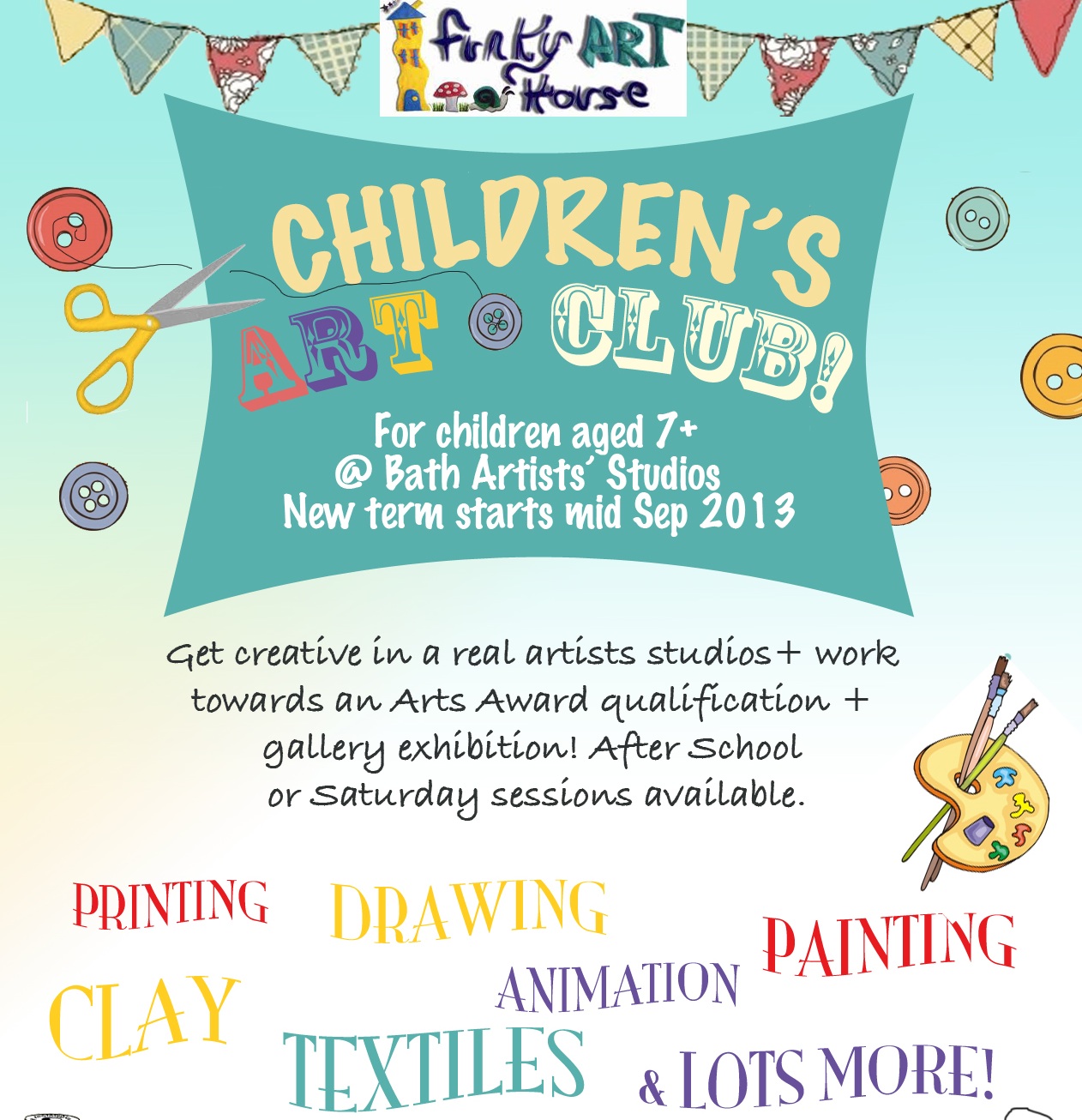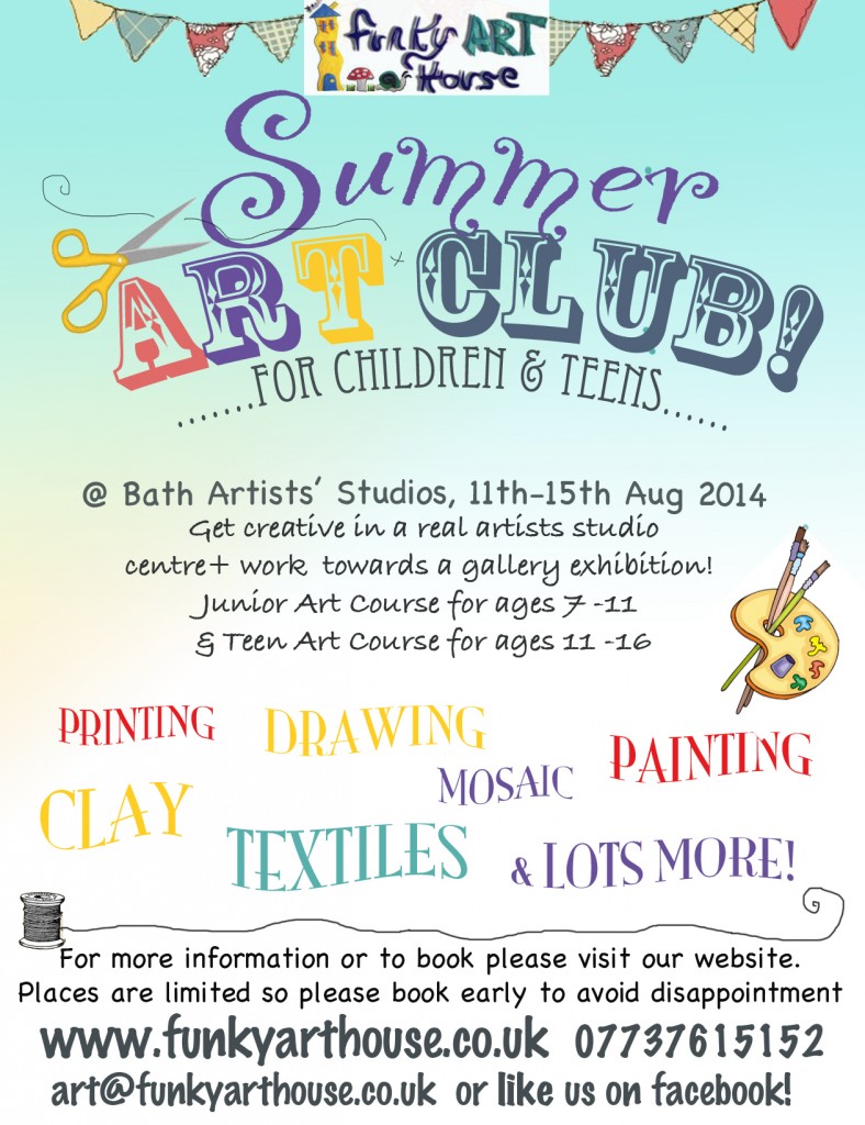 There are still a few places left on our children’s art clubs at Bath Artists Studios. Please click on one of the following links for more info: